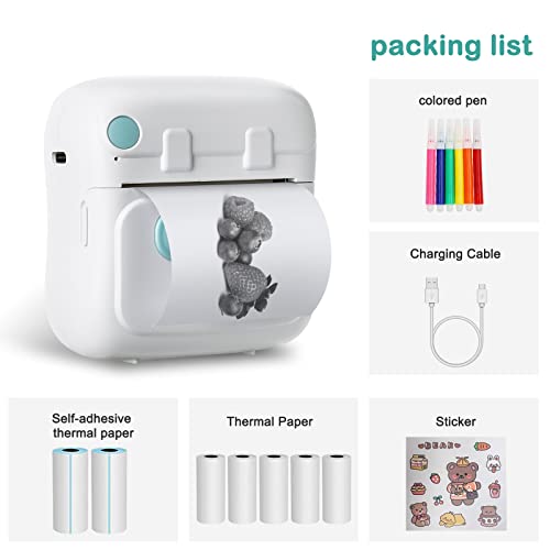 Mini thermische printer: ingebouwde kleine en draagbare mini-thermische printer met 1200 mAh, met een draagbaar ontwerp, je kunt hem meenemen en foto’s altijd en overal afdrukken. De enige zwart-witte print kan dankzij de thermische technologie foto’s, etiketten, records, webpagina’s, QR-codes enz. afdrukken.