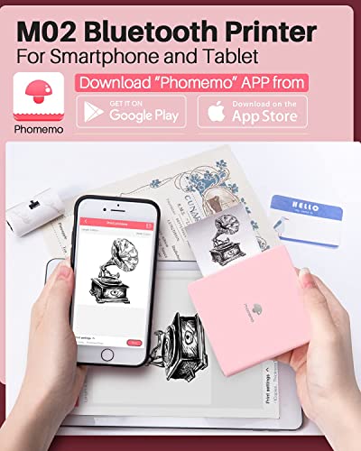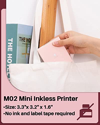 Phomemo M02 Mini Printer Fotoprinter voor Smartphone Bluetooth Printer Sticker Printer, Wordt Geleverd met 3 Rollen Zelfklevend Papier Compatibel met iOS en Android – Rosado