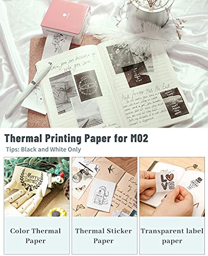 [Thermische Bluetooth-printer] – Bluetooth-verbinding. Compatibel met alle Bluetooth-apparaten, geschikt voor mobiele telefoons en tablets. De Phomemo M02 miniatuurprinter heeft geen inkt nodig om af te drukken en kan alleen in zwart-wit printen. U kunt blauwe afbeeldingen afdrukken op speciaal papier. En kan printen op transparant papier.