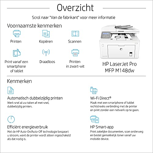 Specification: HP LaserJet Pro MFP M148DW, Draadloze Wifi Monochroom Laserprinter voor thuiskantoor (Printen, kopiëren, scannen)